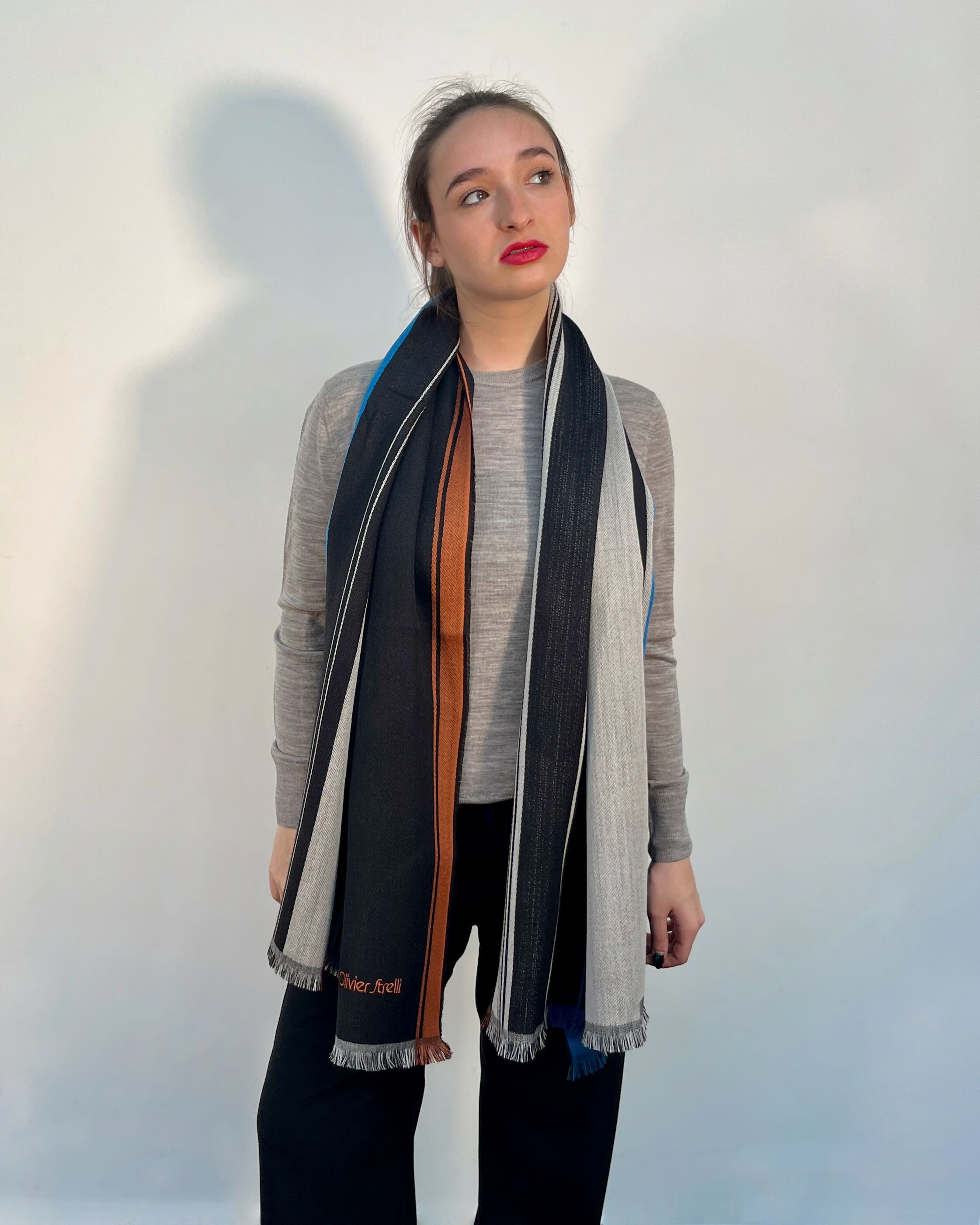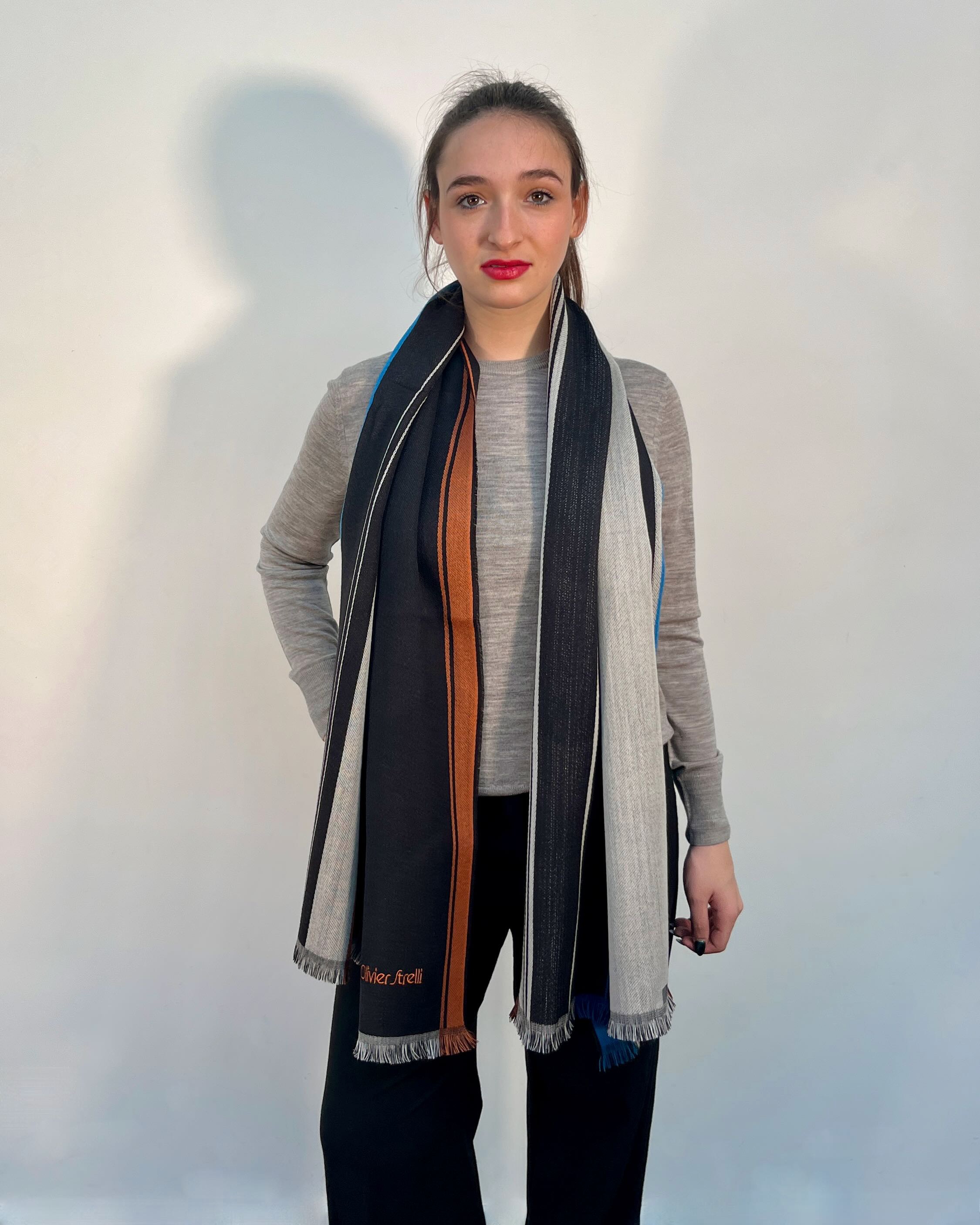 Echarpe unisexe Tissée 100% Laine, motifs lignes colorées