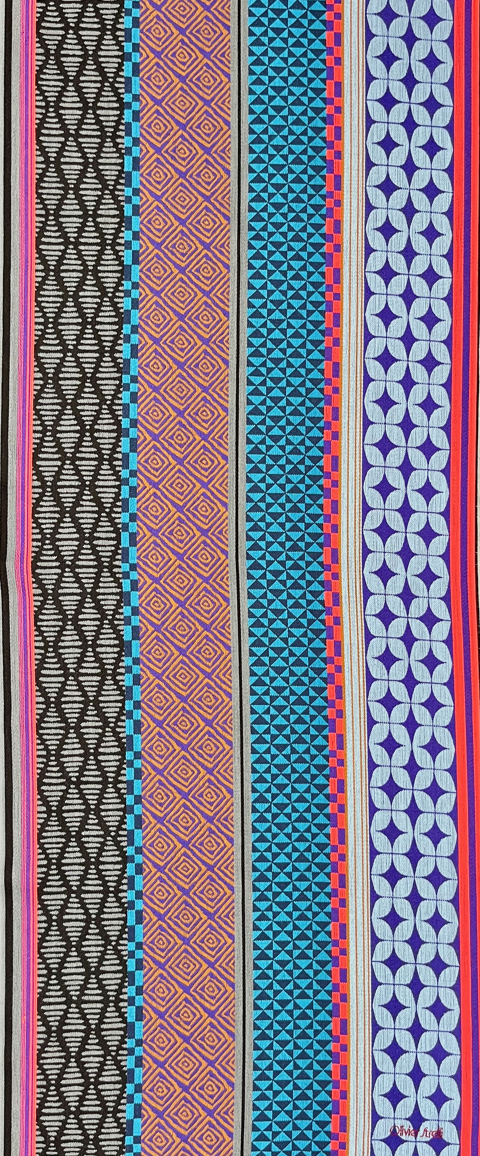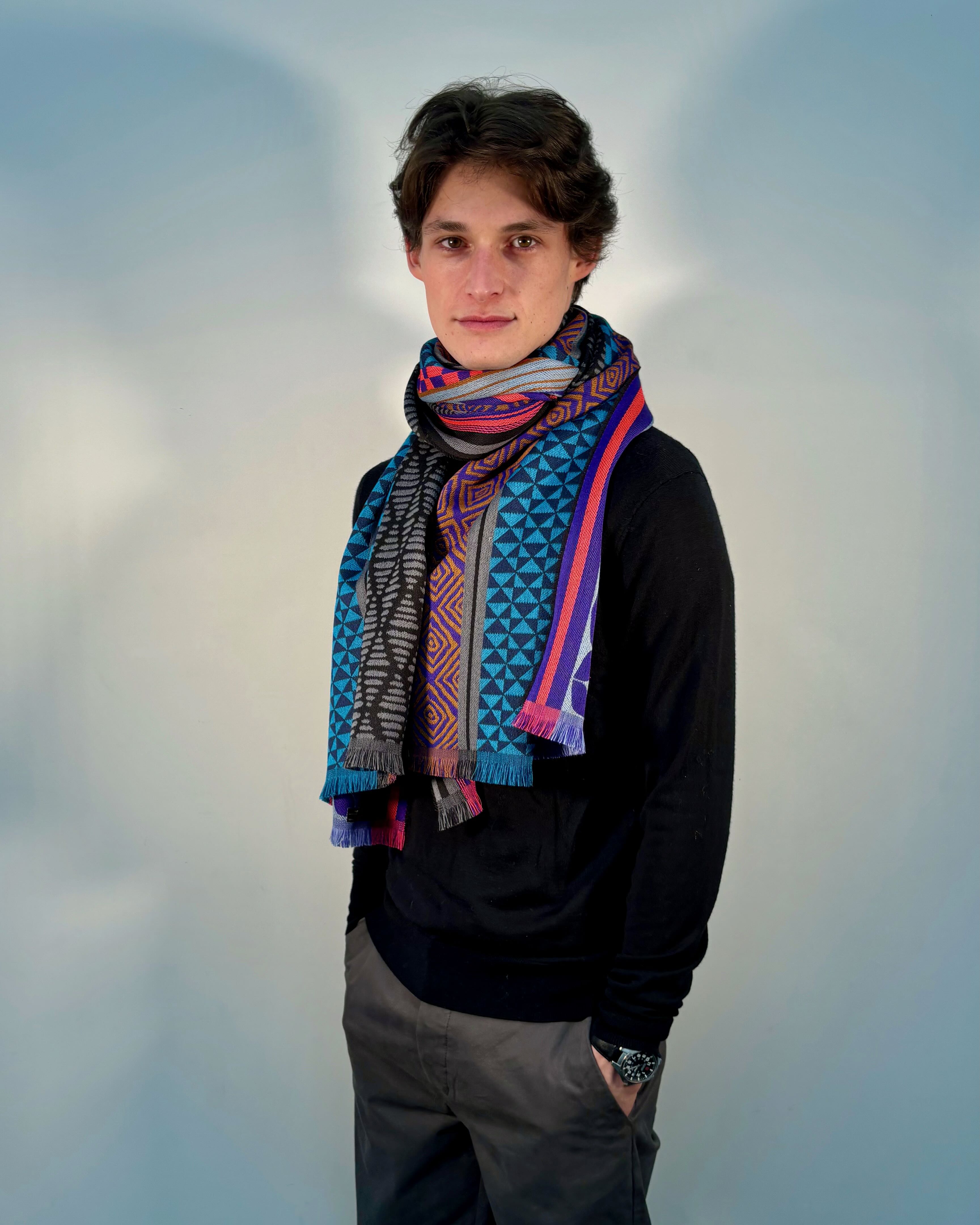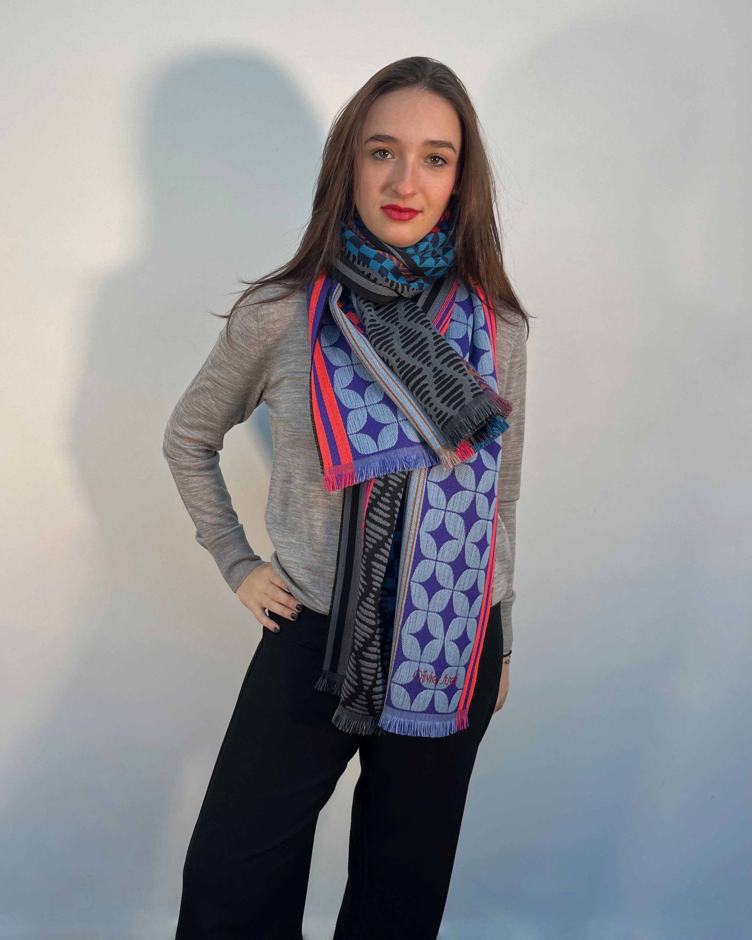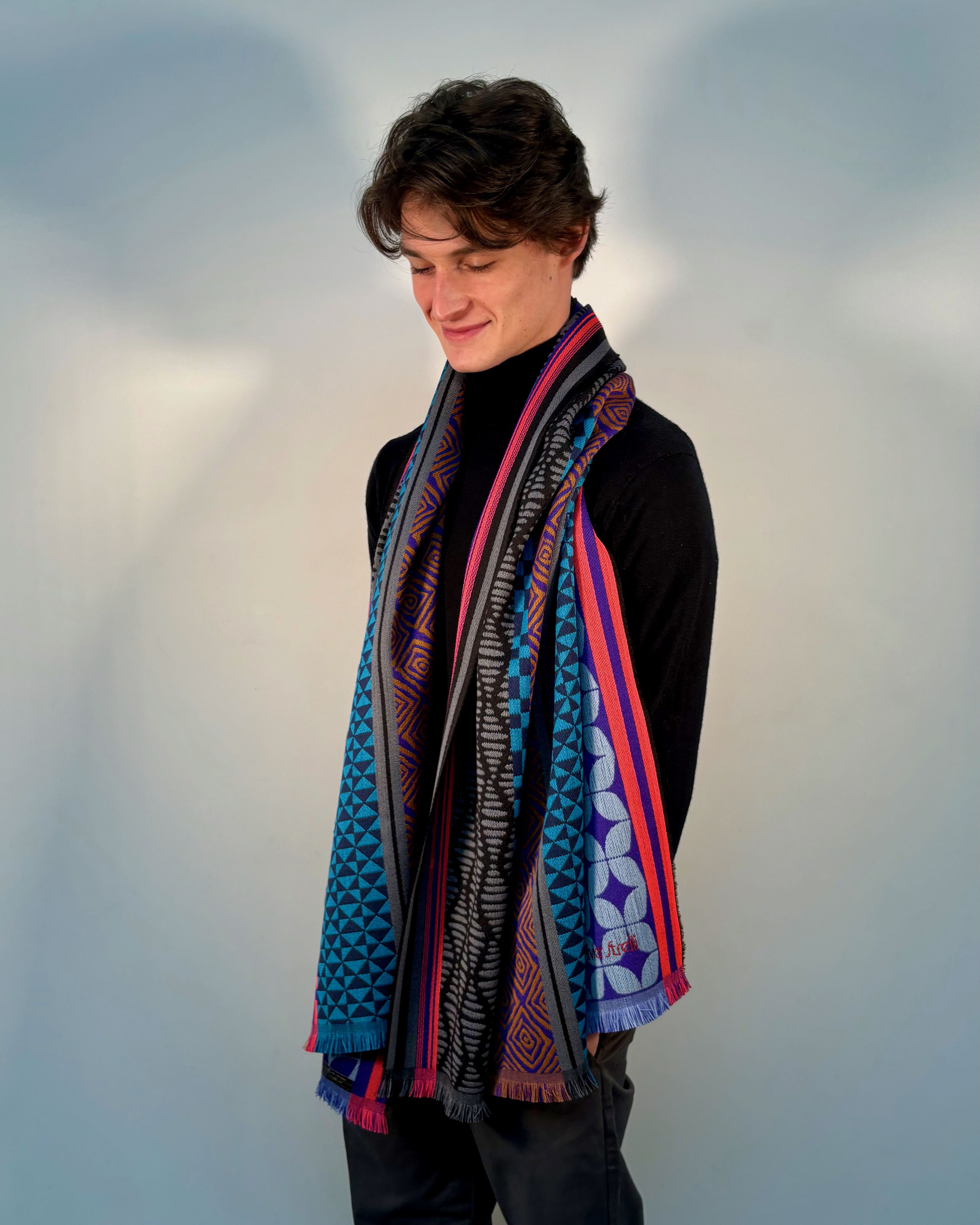 Unisex scarf woven 100% wool, colorful Geometric Vintage design