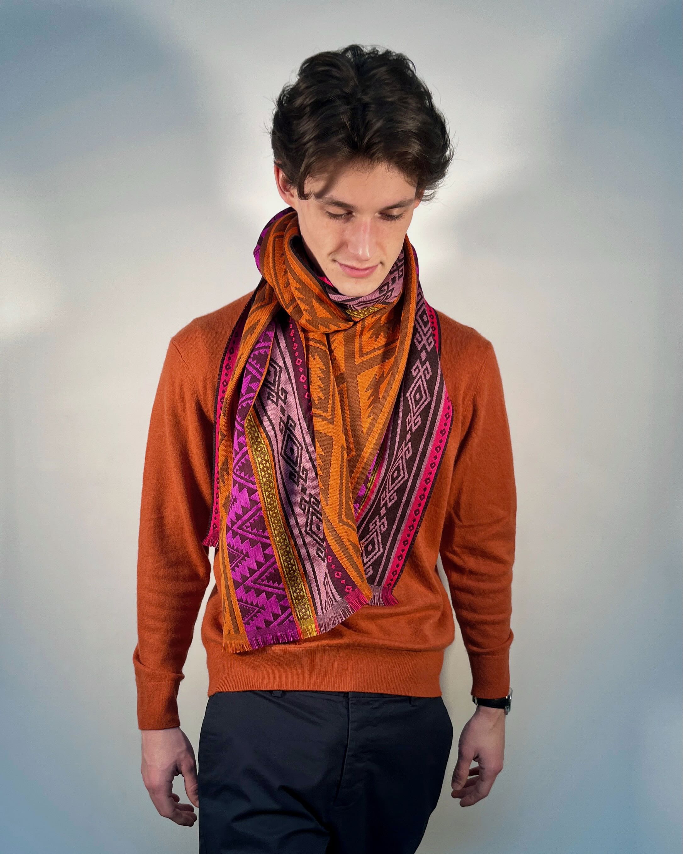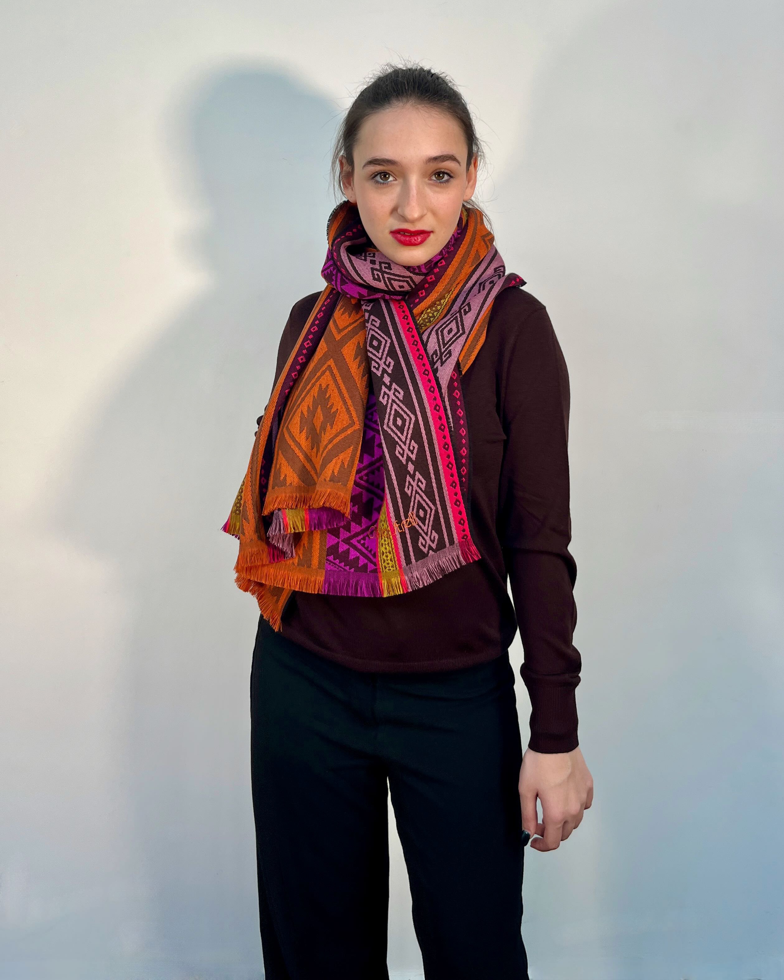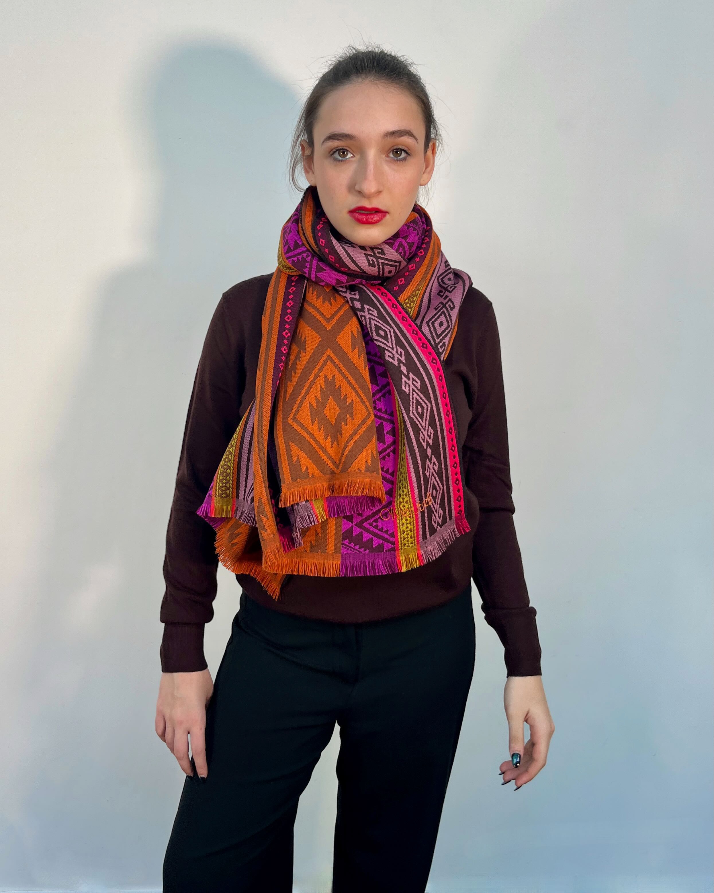 Unisex scarf woven 100% wool, colorful tribal ethnic patterns