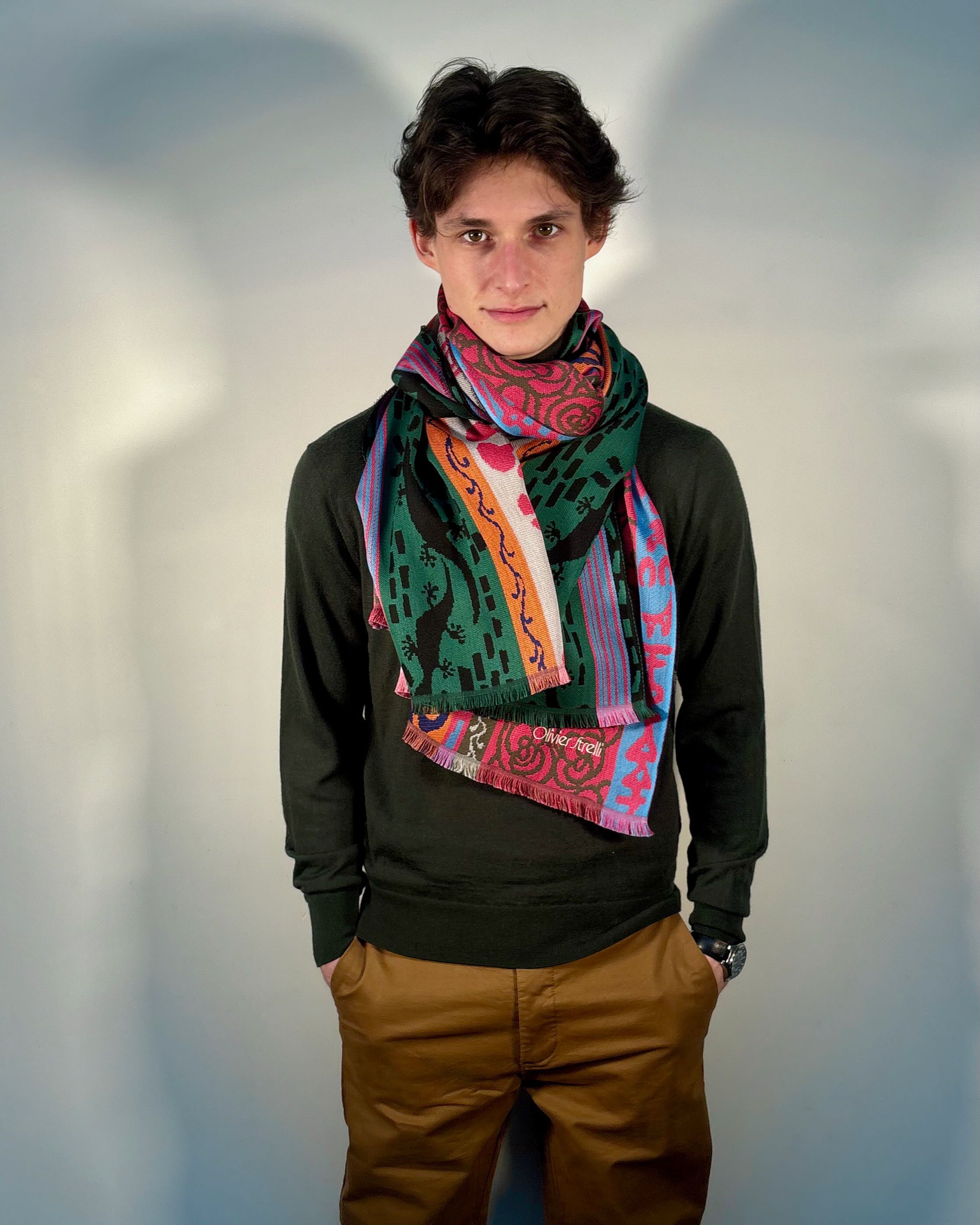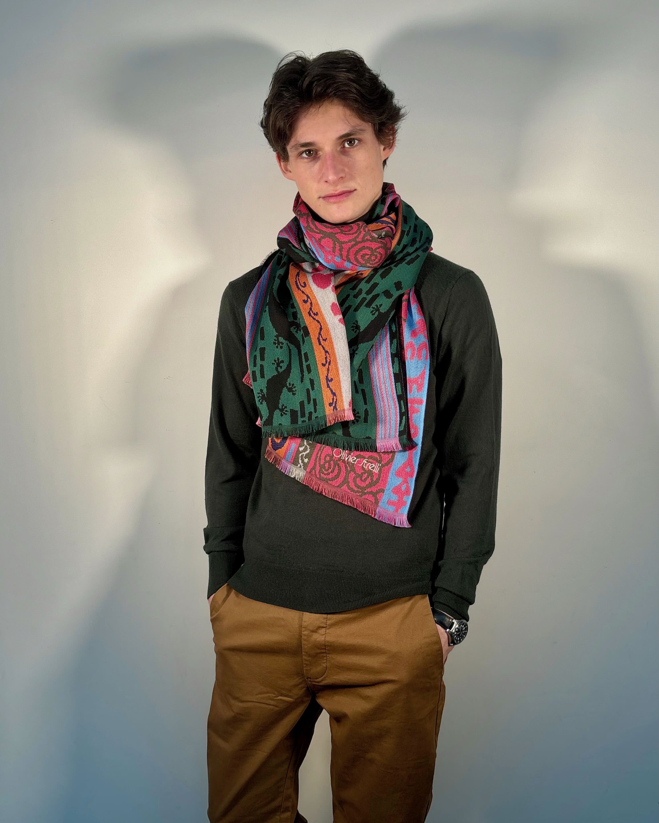 Woven unisex scarf 100% cotton, colored ethnic patern