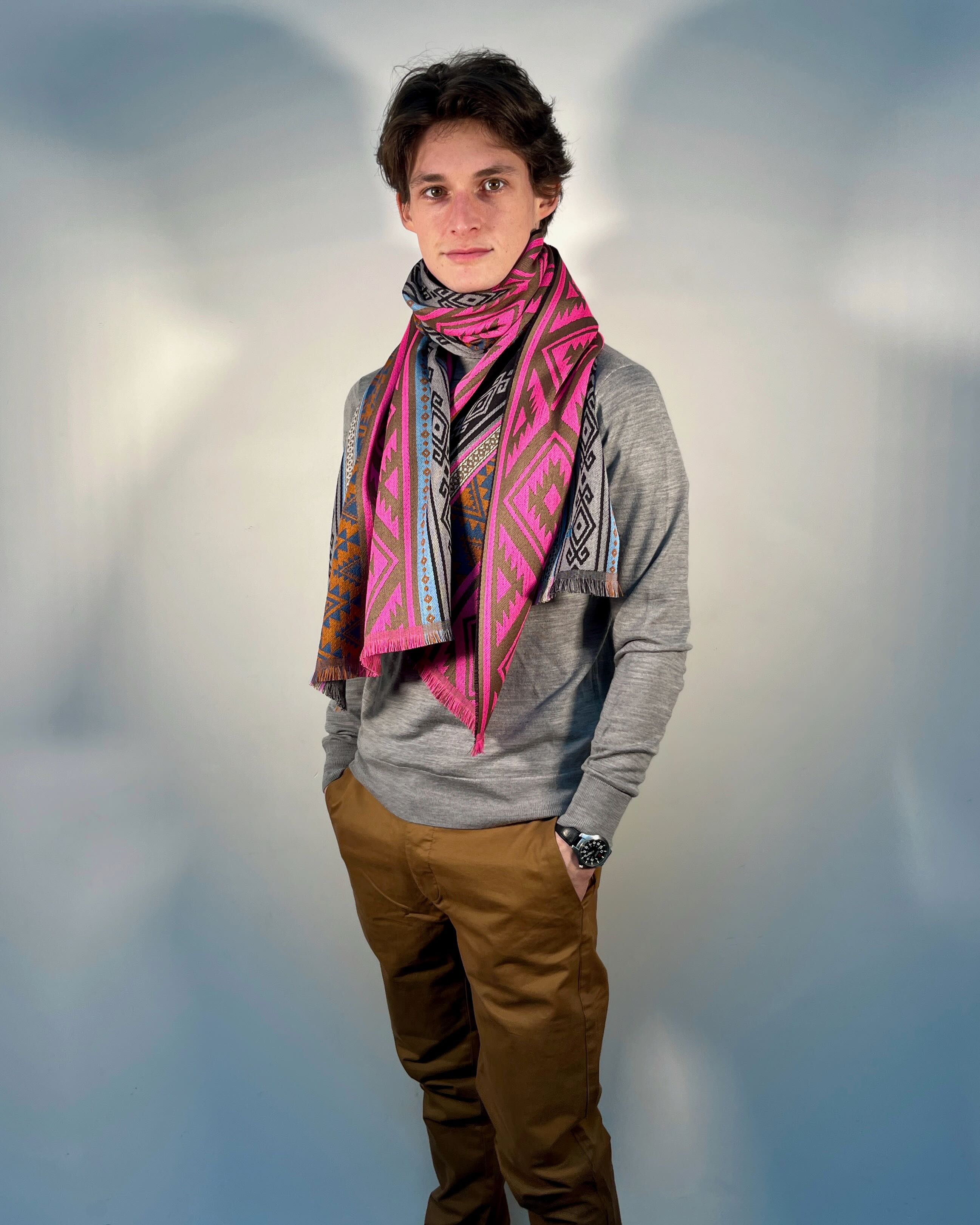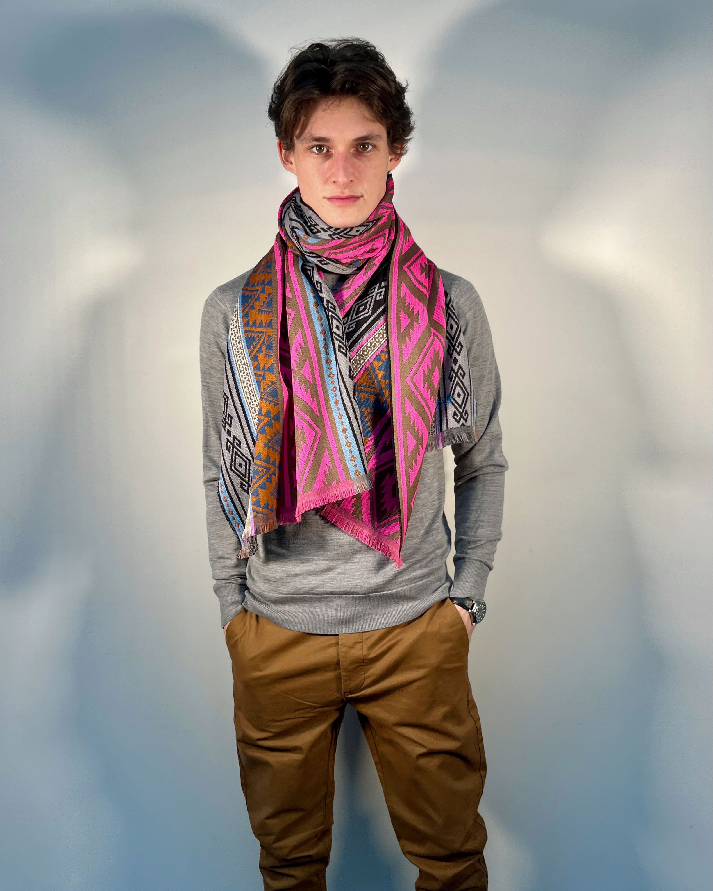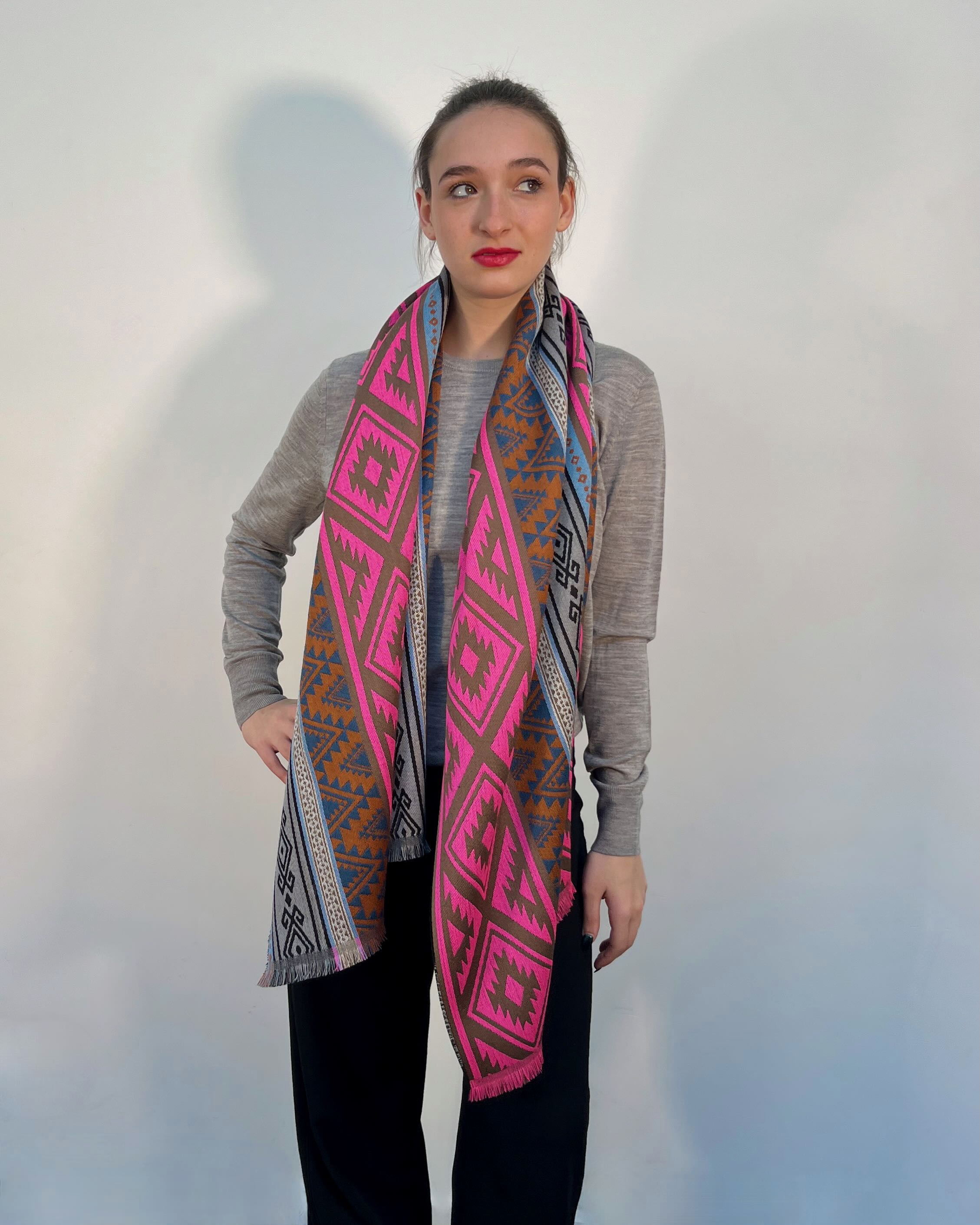 Unisex sjaal geweven van 100% wol, kleurrijke azteekse patronen