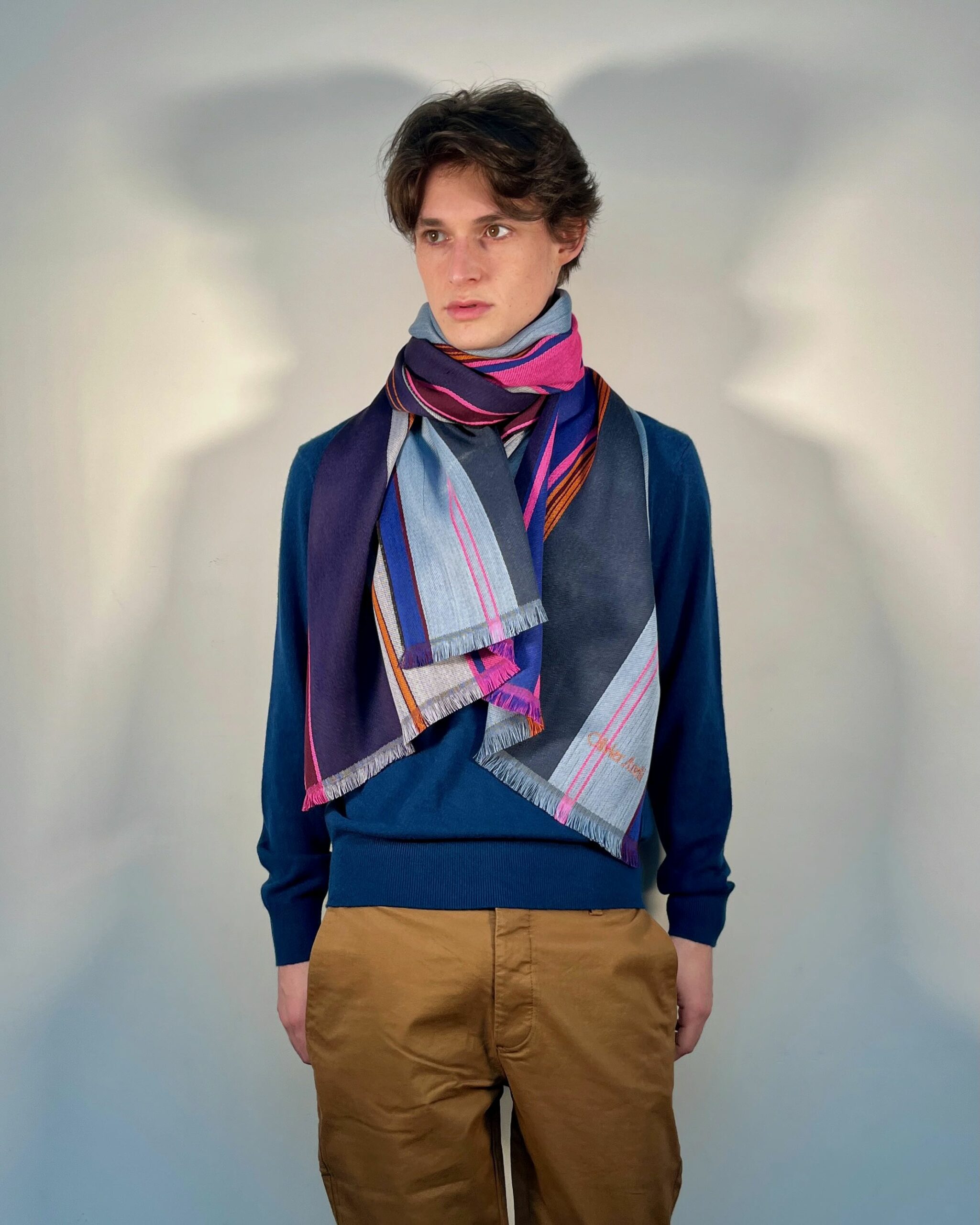Echarpe unisexe Tissée 100% Laine, motifs lignes colorées